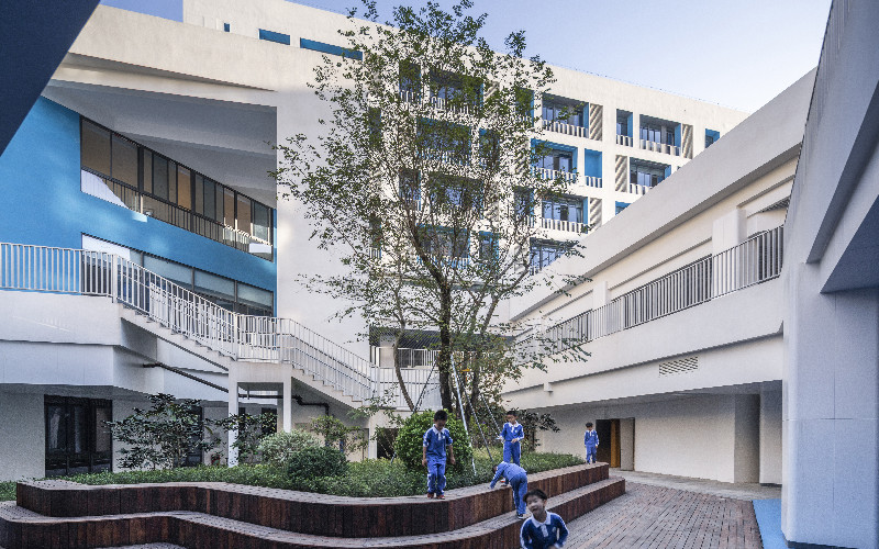 The site was originally an open space of the community where the litchi trees grow as an extension of the urban ecosystem. Here bears the imprint of children living in the surrounding communities. In the context of rapid development of Shenzhen, super-high density and standardization have gradually spilled over into the construction of primary and junior school campuses, and the physical and mental needs of students are becoming particularly important. Therefore, the starting point of the design was to both care for the growth memory of children in the community in concert with the natural power of the woods.